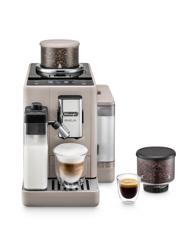Vi har fundet Delonghi De Longhi Rivelia Exam Bg fra Delonghi hos Proshop.dk i kategorien Kaffe Og Espresso. Oplev ægte kaffeluksus med Rivelia EXAM440.55.BG, en stilfuld og kompakt fuldautomatisk kaffemaskine i sand beige, designet til at bringe caféoplevelsen hjem.Rivelia byder på det unikke Bean Switch System, hvor to 250 g bønnebeholdere gør det nemt at skif